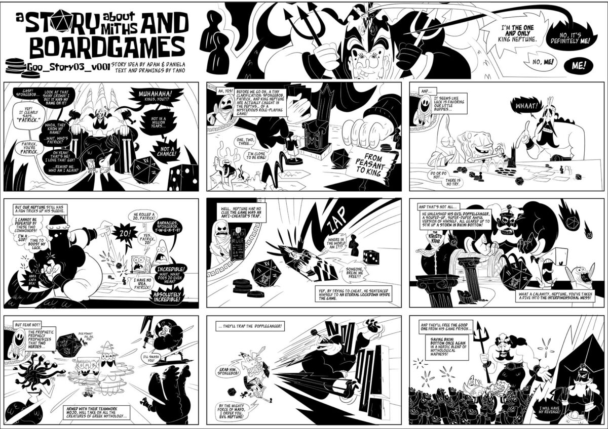Storytelling Use the links on the right to navigate through the case studies, or access the individual pages under “Works/Storytelling” in the top header menu. Case Study Links The flood – Comic Screenplay Moffee’s Adventures – Comic Screenplay SpongeBob – Titans of the Tide – Screenplay Comics 4Paws